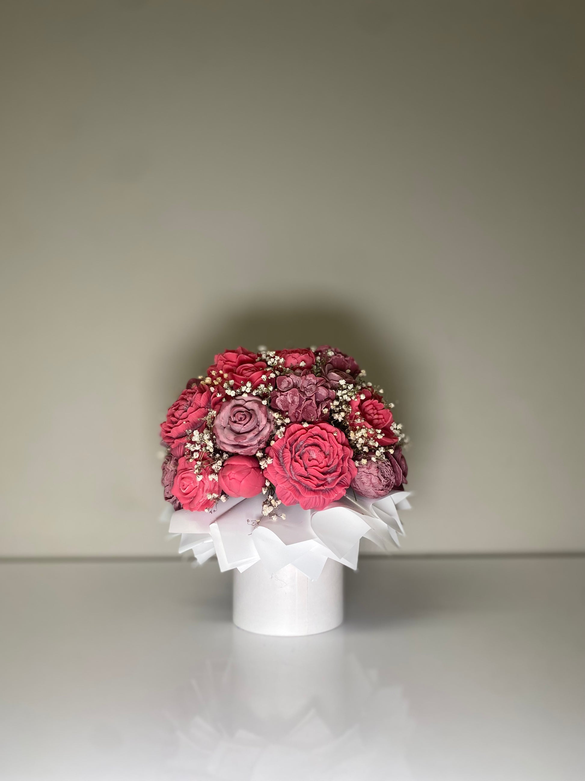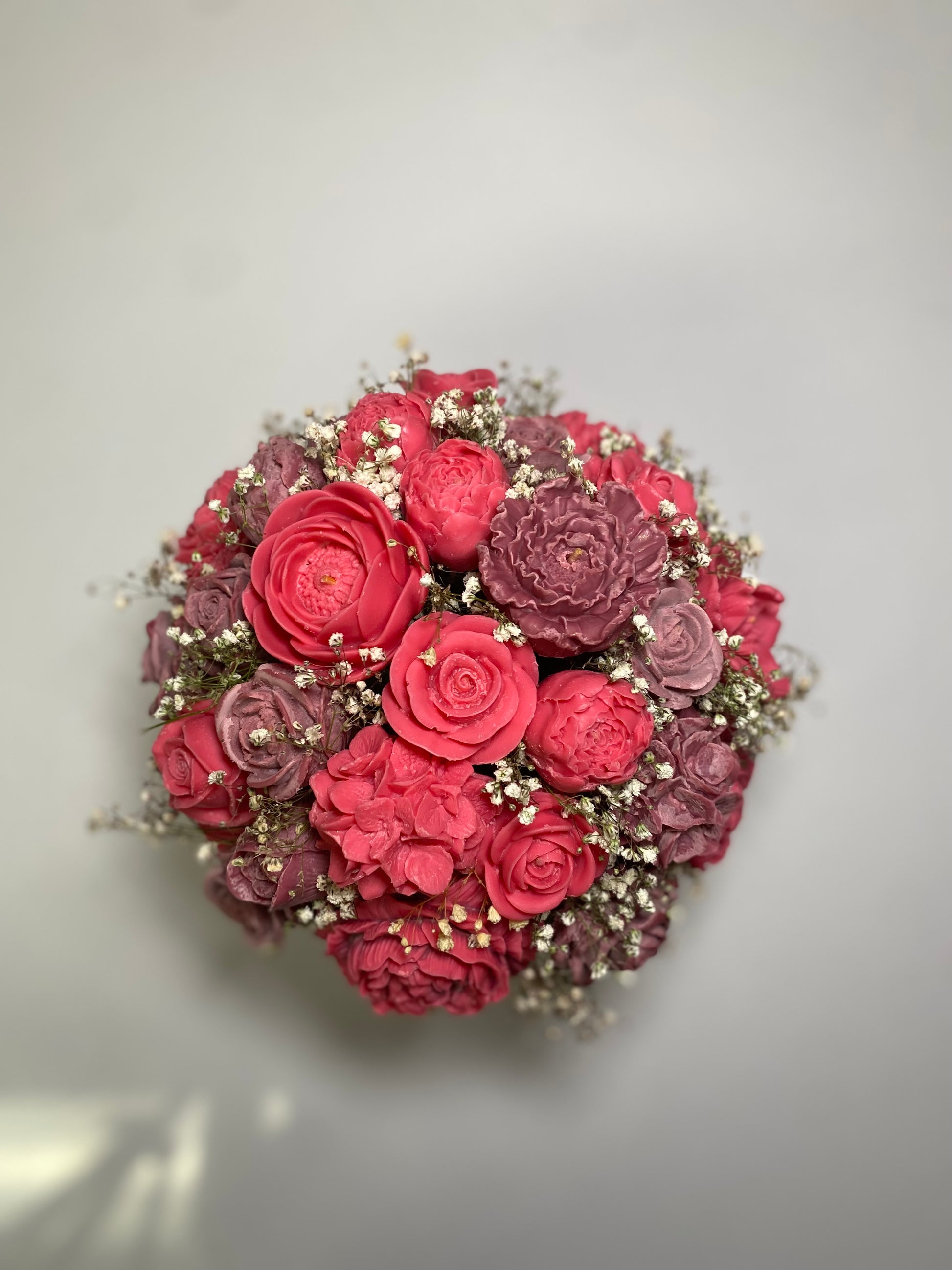 Several shades of red arrangement with a radiating scent. These wax melts are to be picked off and melted onto a wax melter/warmer. If you don’t want to pick them off, you can simply have the bouquet as a decorative piece in your home or office.
