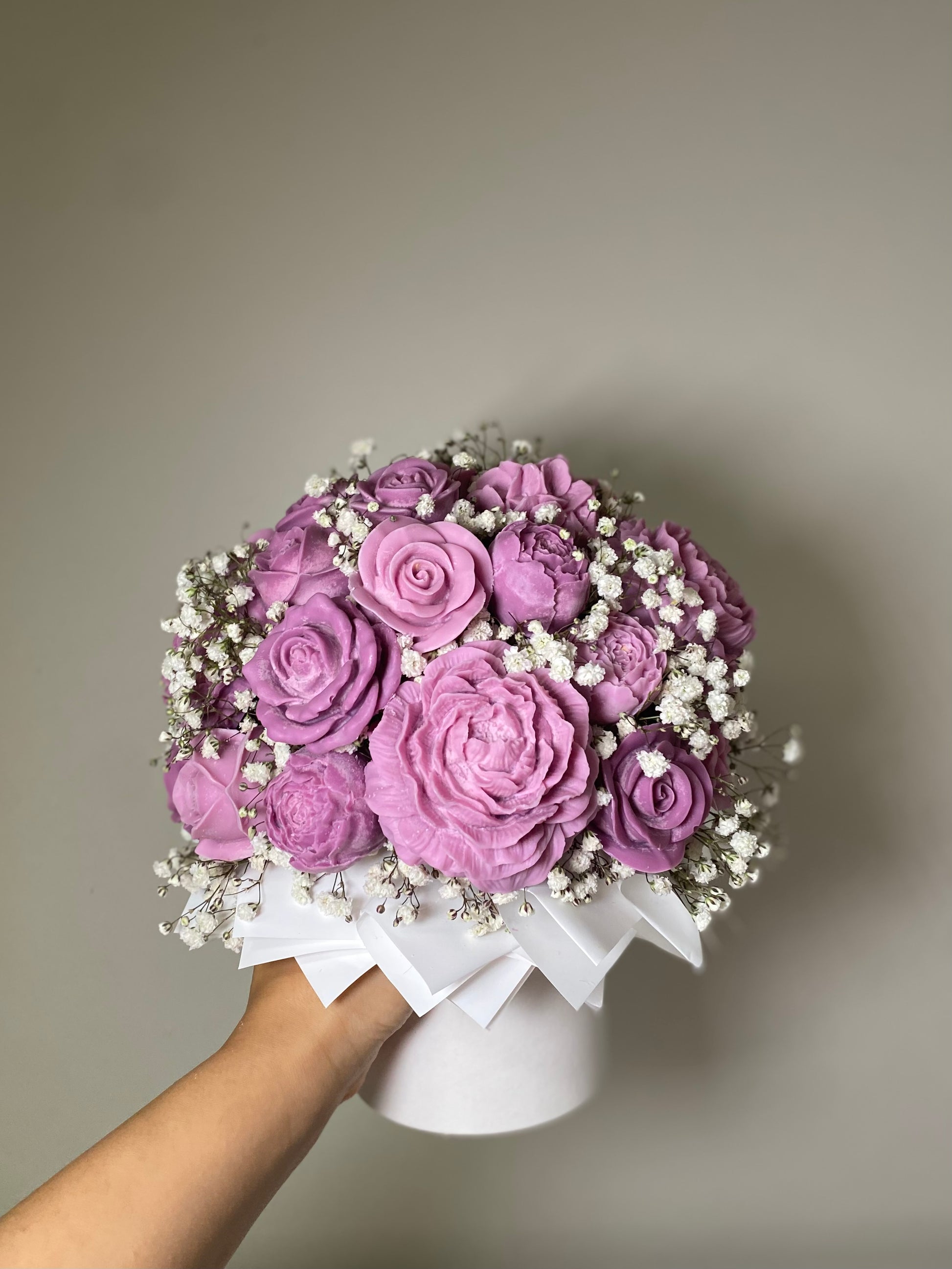 Scented several shades of violet flower wax melt arrangement. These wax melts are to be picked off and melted onto a wax melter/warmer. If you don’t want to pick them off, you can simply have the bouquet as a decorative piece in your home or office.